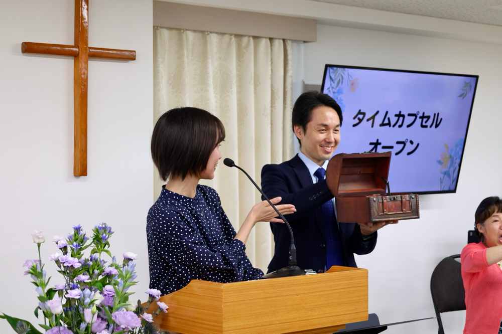 青年や中高生の特別賛美に、救いの証しの特別映像、また15年前に入れたタイムカプセルをオープンする